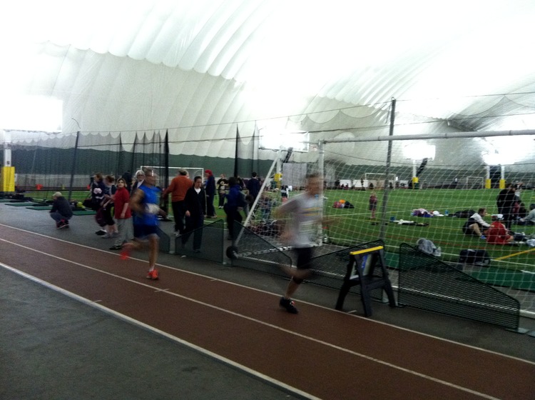 Eventually, though, this demanding trackside pursuit made me weary, and I sat down to write an overdue email. When I popped my head up 15-20 minutes later, there the athletes were, still going around, and around, and around, and around. As I pondered which of the 50 dizzy runners was going to lose his or her lunch energy gel first, I noted that this wasn’t the most picturesque event, but I guess the course made up for the lack of scenery by being flat, fast and, er, not outside.