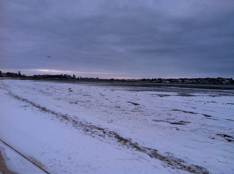 This après-snowstorm shot of the beach at the end of my street has little to do with running. But for this Aussie, seeing the sand covered in white is a wonderful thing.