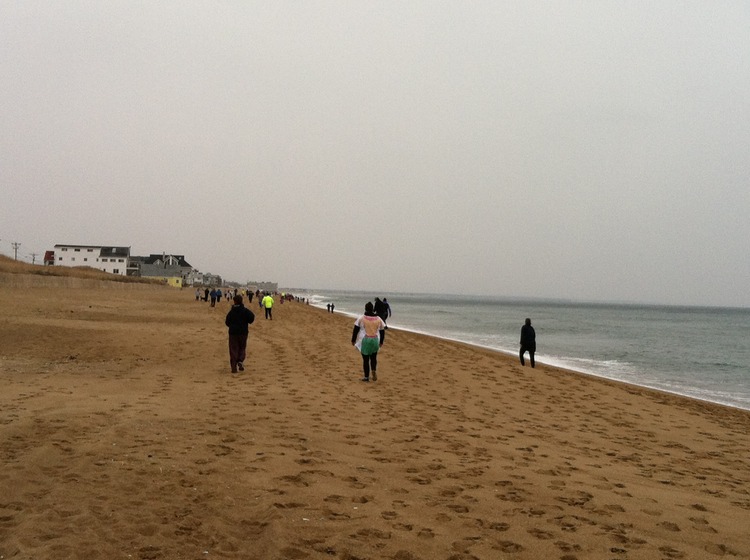 I noticed that the runners I could see in front of me clearly had the same idea. This 5K had turned into a casual mid-winter stroll along the beach. In tights.