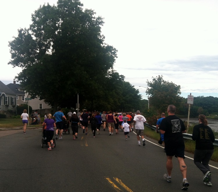 There’s a smorgasbord of runs to choose from every week in New England, so we’d managed to steer clear of repeats from 2011. But I was keen to do one to really get an idea of how much I have improved. Or if I had at all … The Officer Jamie Cochrane Memorial Road Race was perfect. It’s right on our doorstep in Quincy, MA, and last year it had a great raffle and terrific food. All excellent reasons to run. No beer though, but that’s OK. I guess free ale and law enforcement don’t really mix. There were lots of cops around.