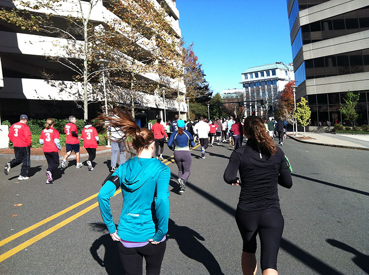We seemed to have skipped fall here in New England. I may have been sartorially prepared for the coldness of this event (although I thought perhaps it was premature to bust out the CW-X tights), but I wasn’t mentally prepared. I think our long hot summer has made me an even worse weather wuss than I used to be. Part of me is glad this challenge is almost over, because the thought of running every weekend again through January and February gives me the chills.