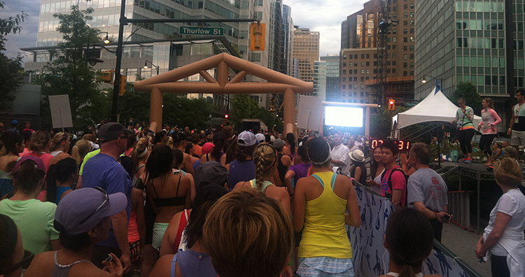 * Last year’s 5K had a stairwell that we had to run down. This year, we had to run up it, too. Seeing as it was so hot, quite a few runners switched to the 5K. The result: a HUGE bottleneck at the stairs in the first mile. I’m talking almost seven minutes of standing around. I like a good rest as much as the next person, but this … well, I though it was pretty funny, actually. Good thing I wasn’t looking for a PR. I think that ship may have sailed …