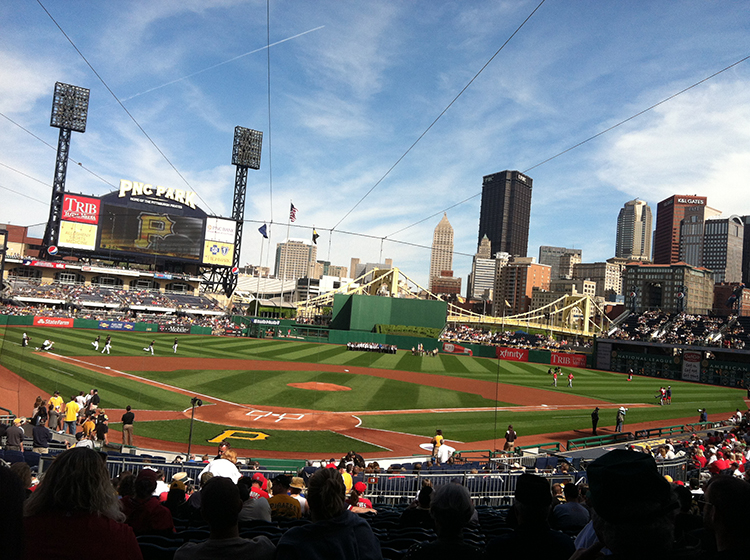 Apart from the mandatory run up the Rocky steps in Philly eons ago and, oddly enough, a recent half in Allentown, we hadn’t spent much time in the Keystone State. Who knew there would be so much awesomeness in Pittsburgh? (In addition to Jill.) We weren’t really sure what to expect from the city but we loved it. It’s small but has a big personality, a gazillion bridges, and a great ballpark (more on that later). There’s an inclinator thingy, with great views, that looks like a house riding up and down the side of a hill. And there’s a sandwich chain where the coleslaw and fries come ON the sandwich. OK, that last one sounded kind of nuts, but Jill said it was an institution. (We didn’t get to try it, um, unfortunately.)